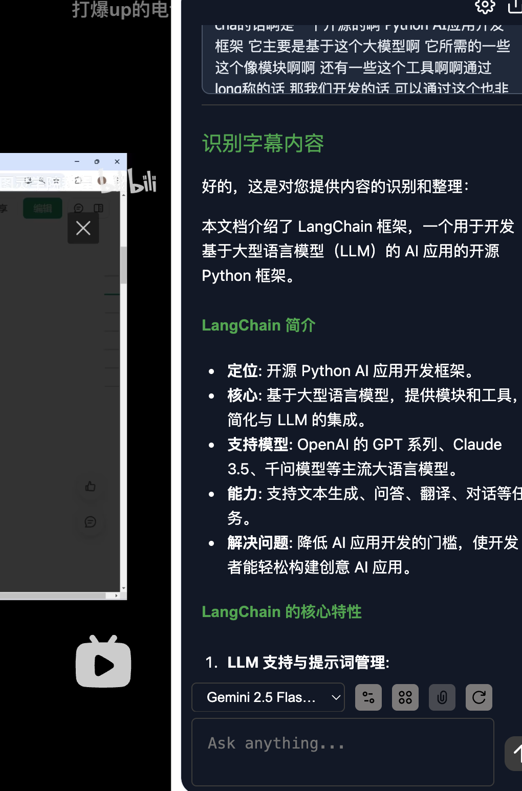 - 我以前觉得Gemini不太好用,但最近发现了一个插件,能自动识别学习视频的内容并整理成笔记,体验太好了。这个插件默认用的是Gemini 2.5 Flash Lite模型,整理了一个32分钟的技术视频,重要信息一个不落,笔记结构清晰。