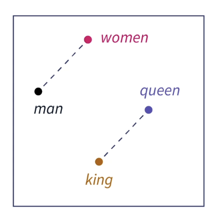 king - man + woman ≈ queen,这揭示了词语之间的语义结构。