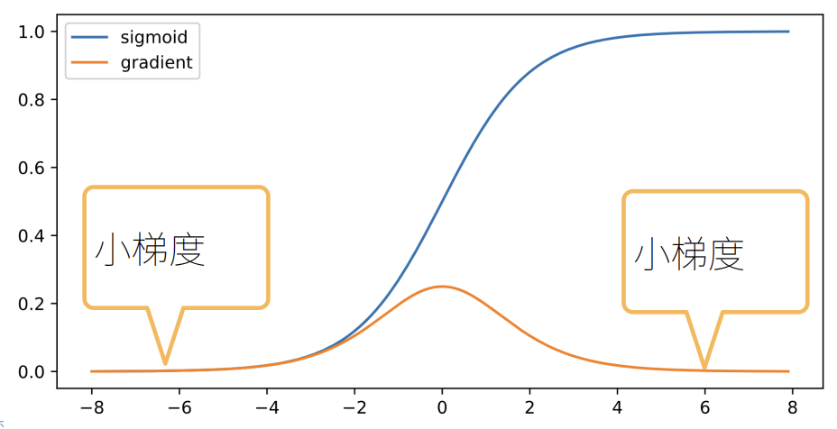 Sigmoid: 在区间两端梯度非常小,极易导致梯度消失。